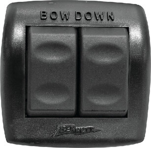 This control is ergonomically designed, water resistant and provides a positive "click" when the trim tabs are engaged. Its lock-out feature prevents user from pressing down on opposite directions at the same time. The control is easy to install, fitting into a single 2-1/2" hole.