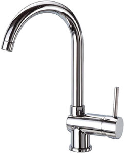 Modern styling in a chrome plated cast brass faucet body with an easy to use single lever control that withstands the corrosive marine environment. Cast faucet body provides a solid feel. Tall J spout galley mixer. Vertical single lever rod provides easy volume control and temperature setting. 1/2" female NPT water connection. 1-3/8" Mounting hole.