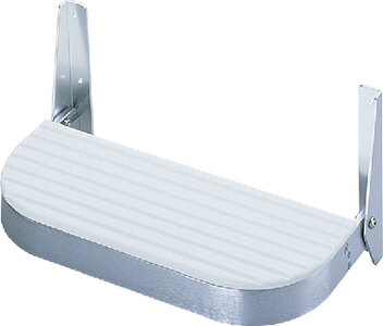 Heavy duty wrap around aluminum extrusion with brushed anodized aluminum finish. High density polyethylene traction grooved step.
